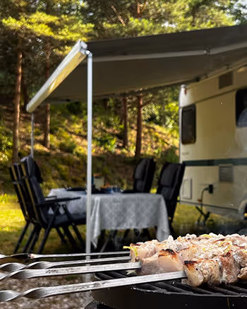 • Brīvdabas atpūta – nojume ar pusdienu galdu un grila piederumi