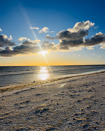 smilšainu pludmali un brīnišķīgiskaistiem saullēktiem jūrā vien 100 m attālumā